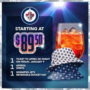 Each ticket includes one Aperol Spritz and a reversible Winnipeg Jets bucket hat, and a door giveaway featuring Winnipeg Jets ski goggles.